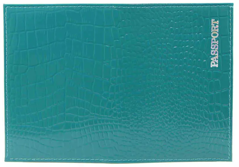 Обложка для паспорта из натуральной кожи Кроко, бирюзовый, тисн.конгрев "PASSPORT"