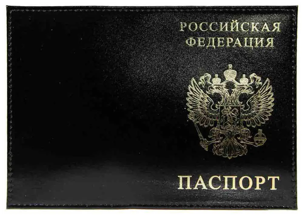 Обложка для паспорта из натуральной кожи Шик, черный, тисн.золото "РОССИЯ-ПАСПОРТ-ГЕРБ"