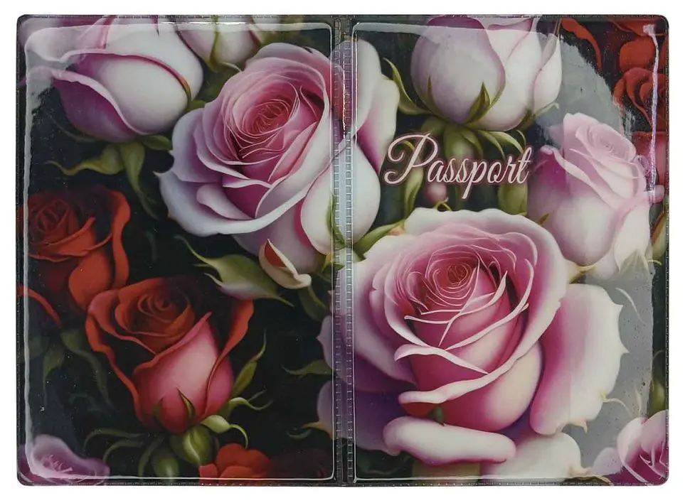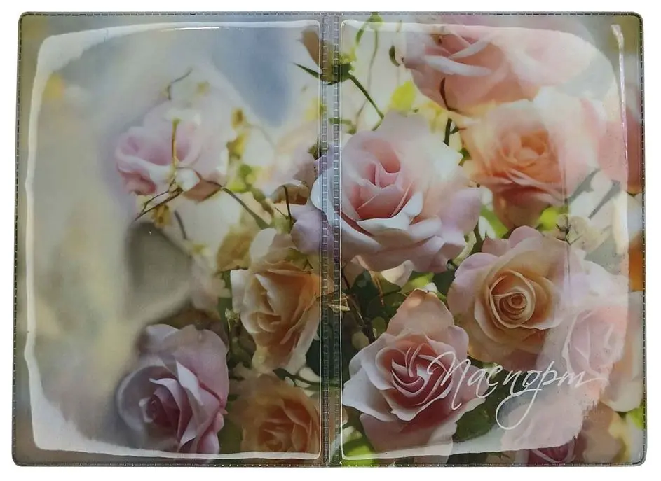 Обложка для паспорта, ПВХ глянцевый с печатью, принт "Пленительные розы" (PASSPORT)