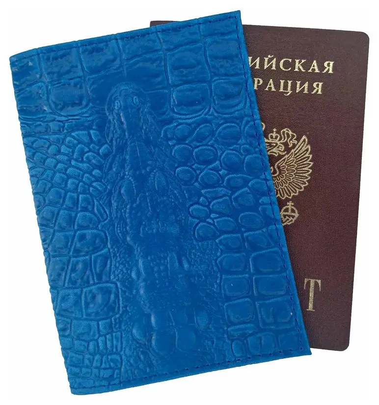 Обложка для паспорта из натуральной кожи, голубой, сплошное тиснение по коже "Данди"