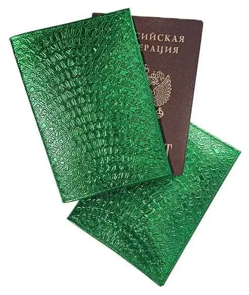 Обложка для паспорта из натуральной кожи, зеленый, сплошное тиснение фольгой "металлик" по коже "Железный Питон"