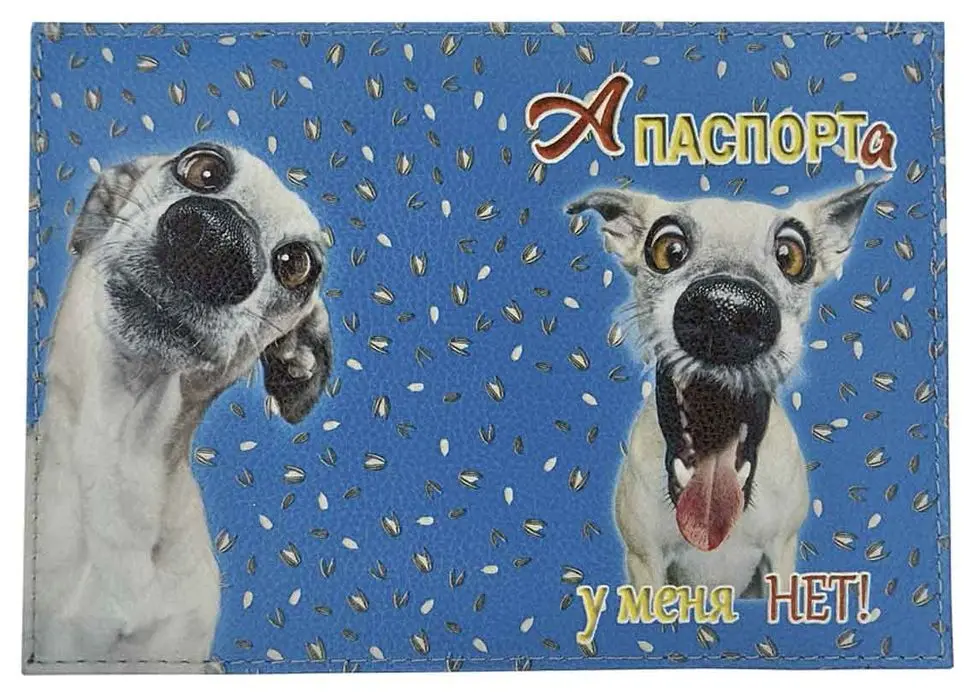 Обложка для паспорта из натуральной кожи, цветной рисунок по коже "А паспорта у меня нет!"