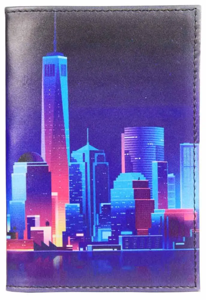 Обложка для паспорта из натуральной кожи, цветной рисунок по коже "Сити"