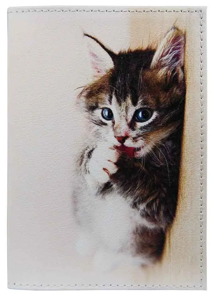 Обложка для паспорта из натуральной кожи, цветной рисунок по коже "Барсик"