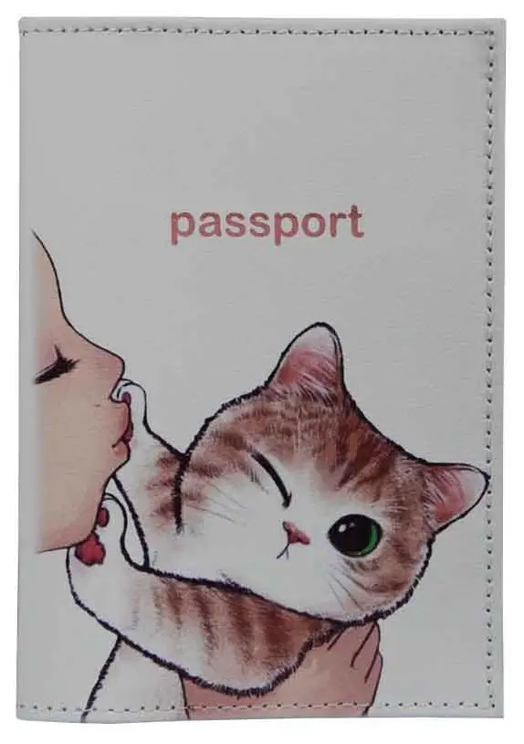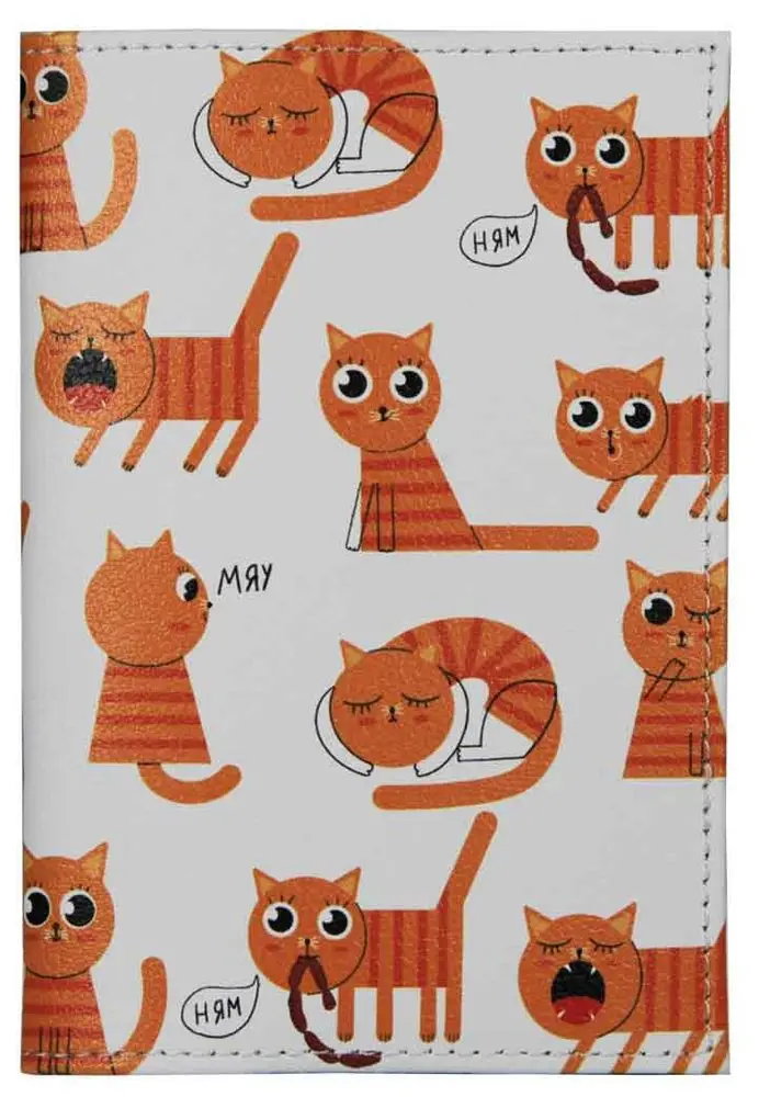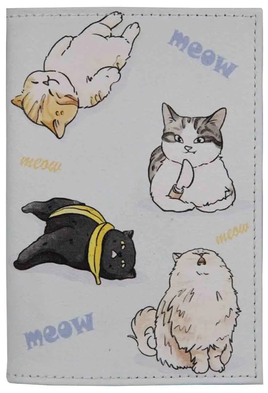 Обложка для паспорта из натуральной кожи, цветной рисунок по коже "Кото-мем"