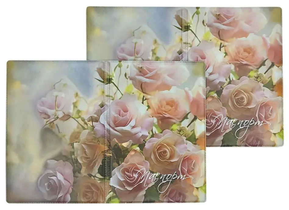 Обложка для паспорта, ПВХ матовый с печатью, принт "Пленительные розы"