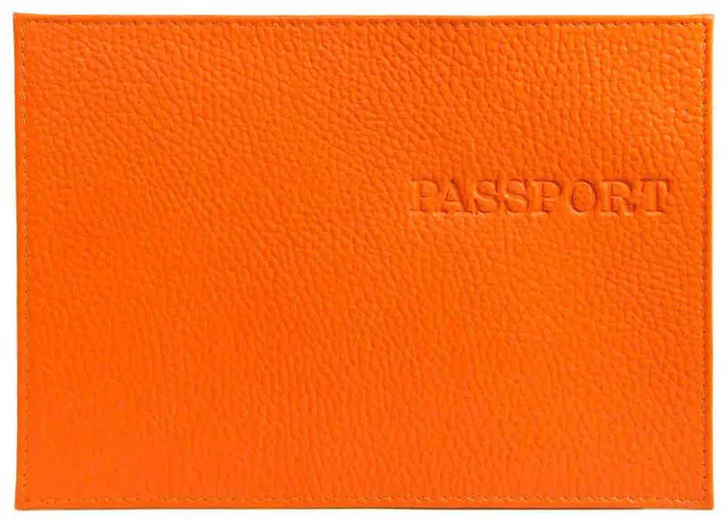 Обложка для паспорта из натуральной кожи Флотер, оранжевый, тисн.конгрев "PASSPORT"