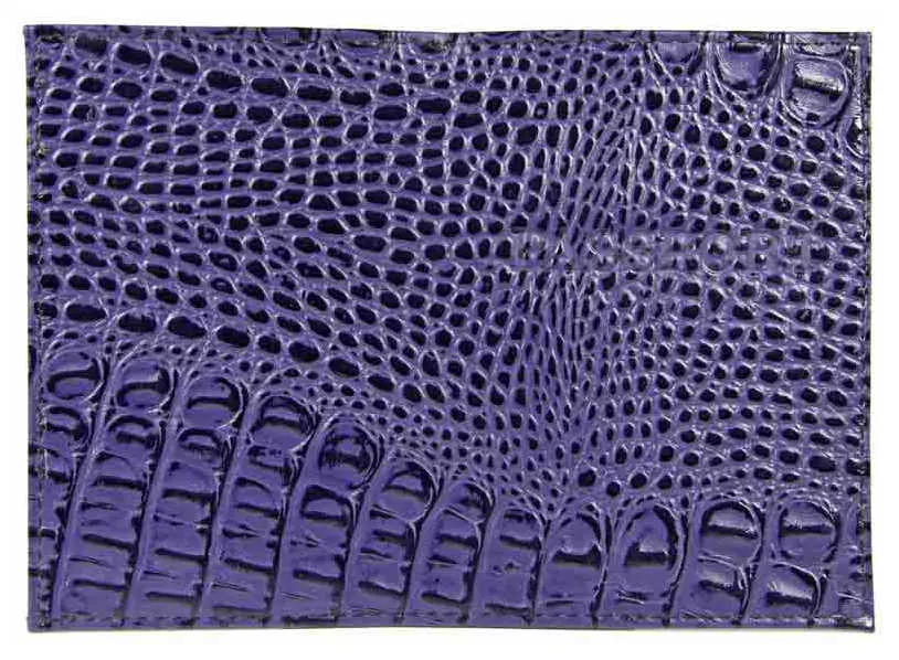 Обложка для паспорта из натуральной кожи Крокодил, фиолетовый, тисн.серебро "PASSPORT"