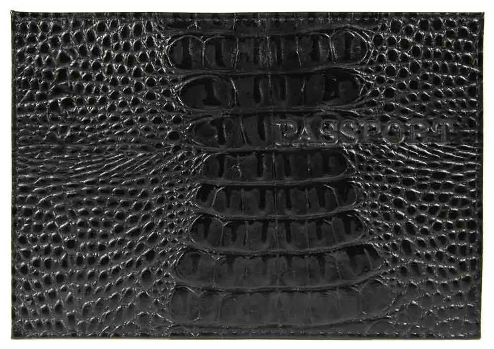 Обложка для паспорта из натуральной кожи Кроко, черный, тисн.конгрев "PASSPORT"