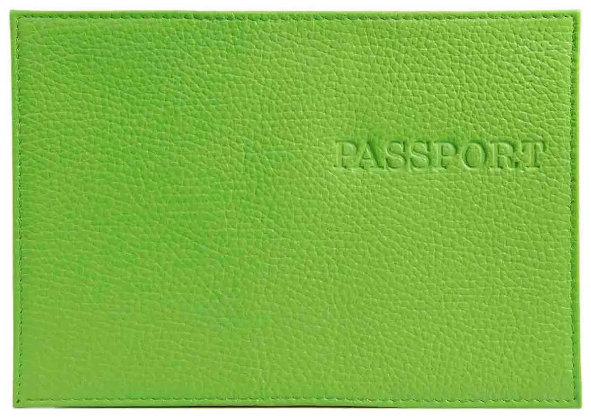 Обложка для паспорта из натуральной кожи Флотер, салатовый, тисн.конгрев "PASSPORT"