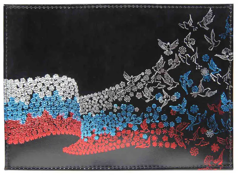 Обложка для паспорта из лакированной натуральной кожи, черный, тиснение тремя цветами "Летящий Флаг"