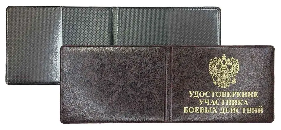 Обложка для удостоверения, "Элит", коричневый, тиснение золото "УДОСТОВЕРЕНИЕ УЧАСТНИКА БОЕВЫХ ДЕЙСТВИЙ", без уголков