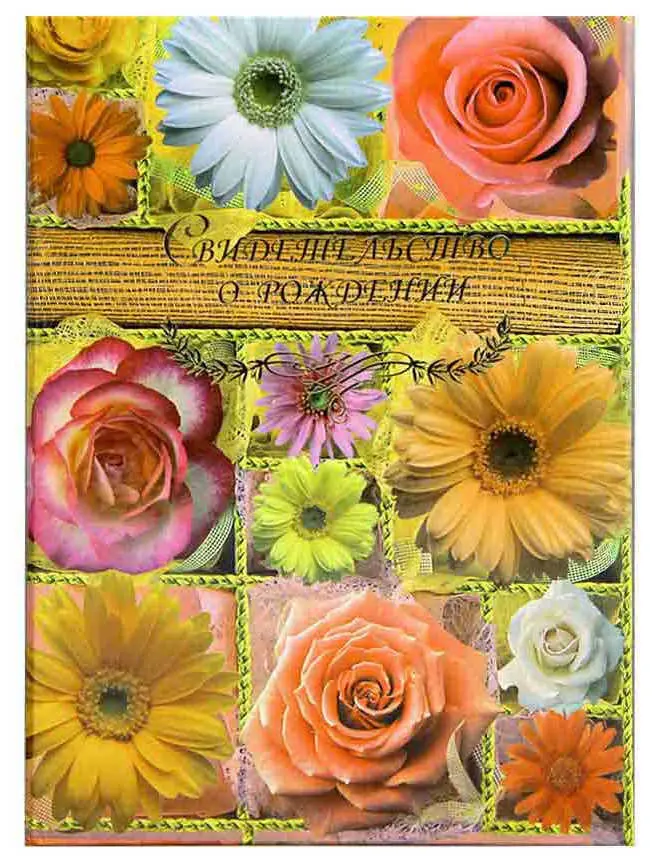 Папка с файлом ламинированная А4 (жесткая) "Свидетельство о рождении с виньеткой" Цветы в коробочках