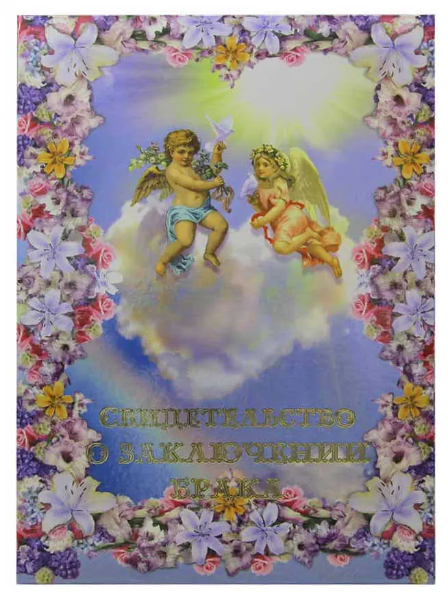 Папка с файлом ламинированная А4 (жесткая) "Свидетельство о заключении брака" Пара ангелочков