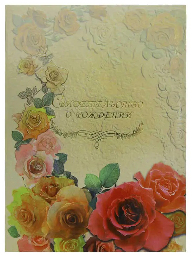 Папка с файлом ламинированная А5 (жесткая) "Свидетельство о рождении с виньеткой" Цветы в коробочках