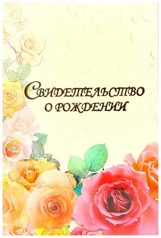 Папка с файлом дизайнерские переп.материалы А4 (пухлая) "Свидетельство о рождении с виньеткой" роза золотая