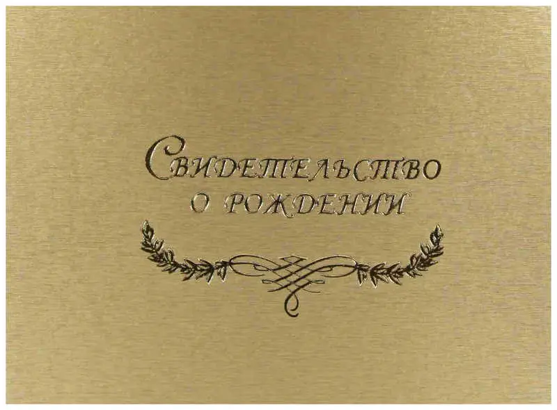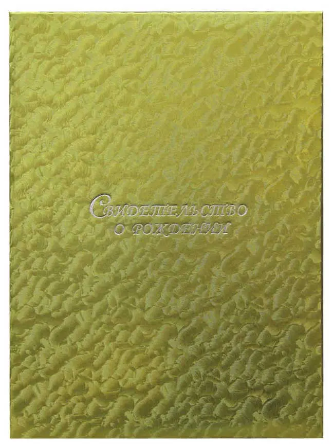 Папка с файлом дизайнерские переп.материалы А5 (пухлая) "Свидетельство о рождении с виньеткой" шелк золотой