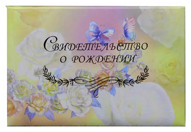 Папка с файлом ламинированная А5 (пухлая) "Свидетельство о рождении с виньеткой" Цветы в коробочках