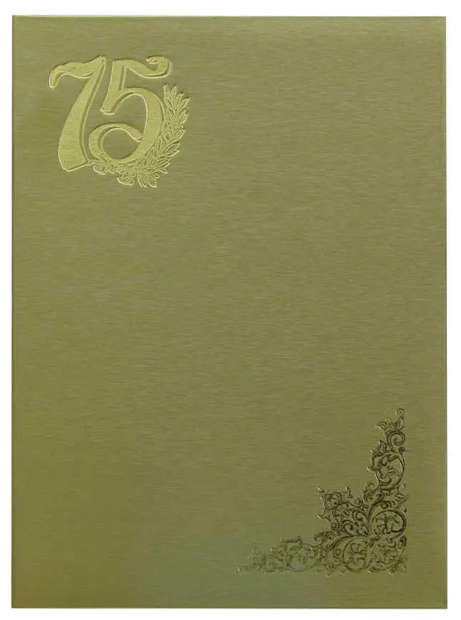 Папка адресная дизайнерские материалы А4 (пухлая) "75 лет" шелк золотой