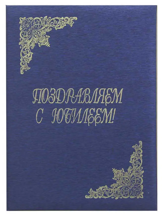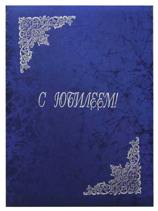 Папка адресная дизайнерские материалы А4 (пухлая) "Поздравляем с юбилеем" шелк синий