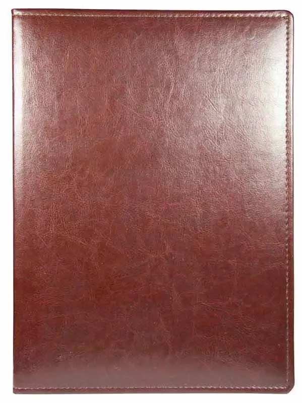Папка из натуральной кожи (пухлая) А4, прошитая по краю, без тиснения, выклейка дизайнер.материалы, коричневая, с ляссе