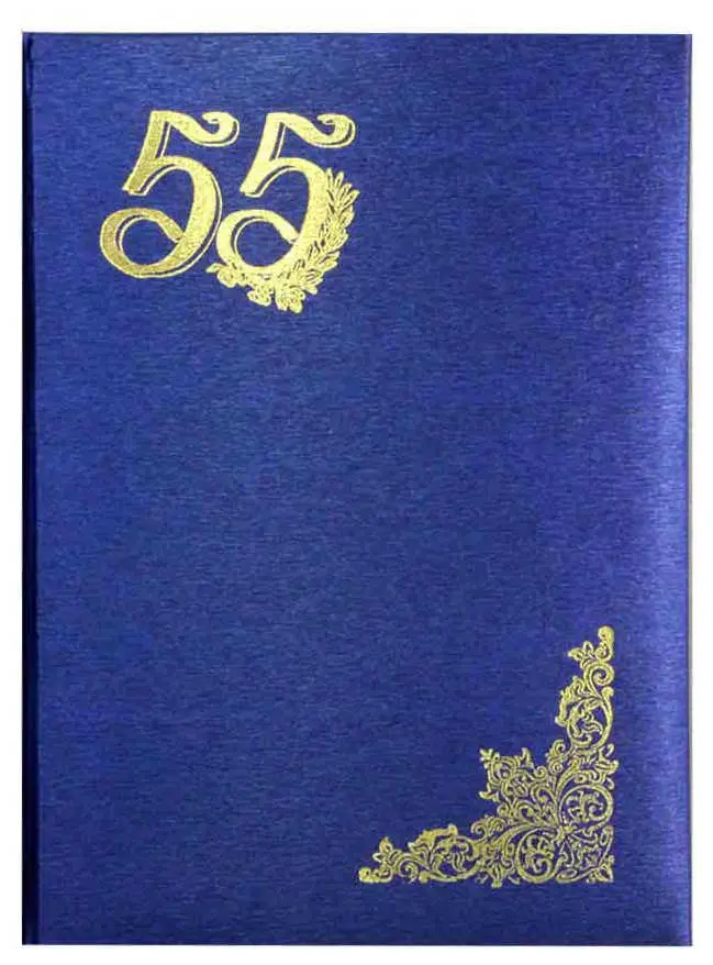 Папка адресная дизайнерские материалы А4 (пухлая) "55 лет" шелк синий