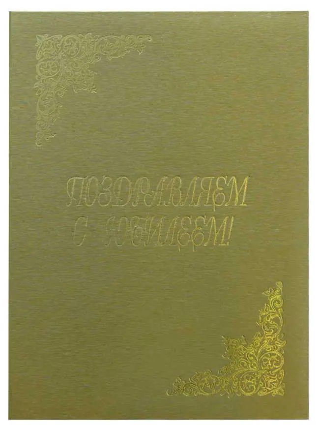 Папка адресная дизайнерские материалы А4 (пухлая) "Поздравляем с юбилеем" шелк золотой