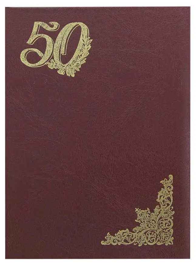 Папка адресная дизайнерские материалы А4 (пухлая) "50 лет" бордо под кожу