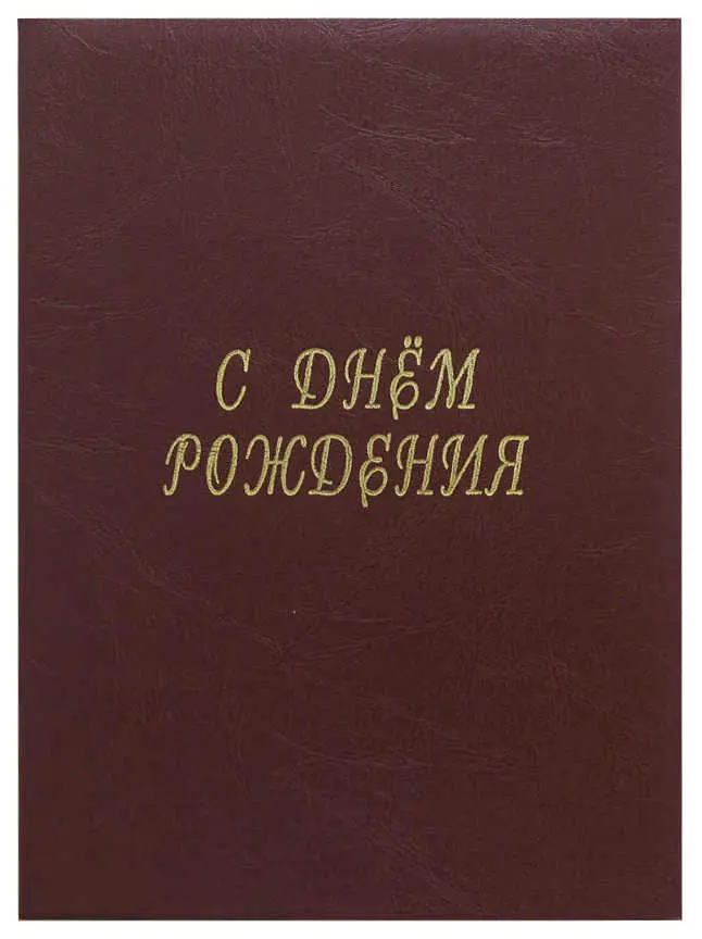 Папка адресная дизайнерские материалы А4 (пухлая) "С Днем Рождения" бордо под кожу