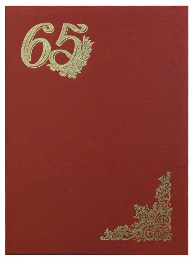 Папка адресная дизайнерские материалы А4 (пухлая) "65 лет" шелк красный