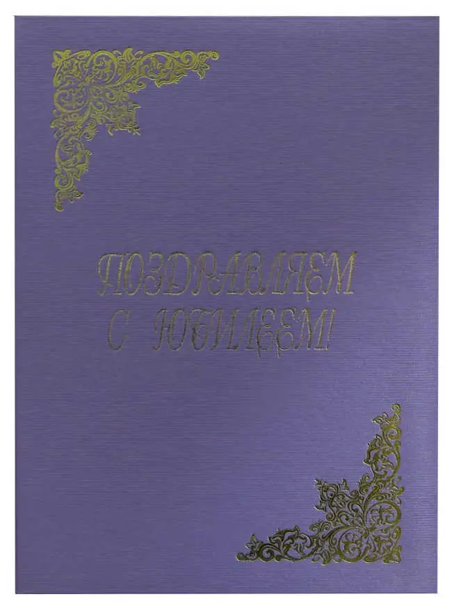 Папка адресная дизайнерские материалы А4 (пухлая) "Поздравляем с юбилеем" шелк сиреневый