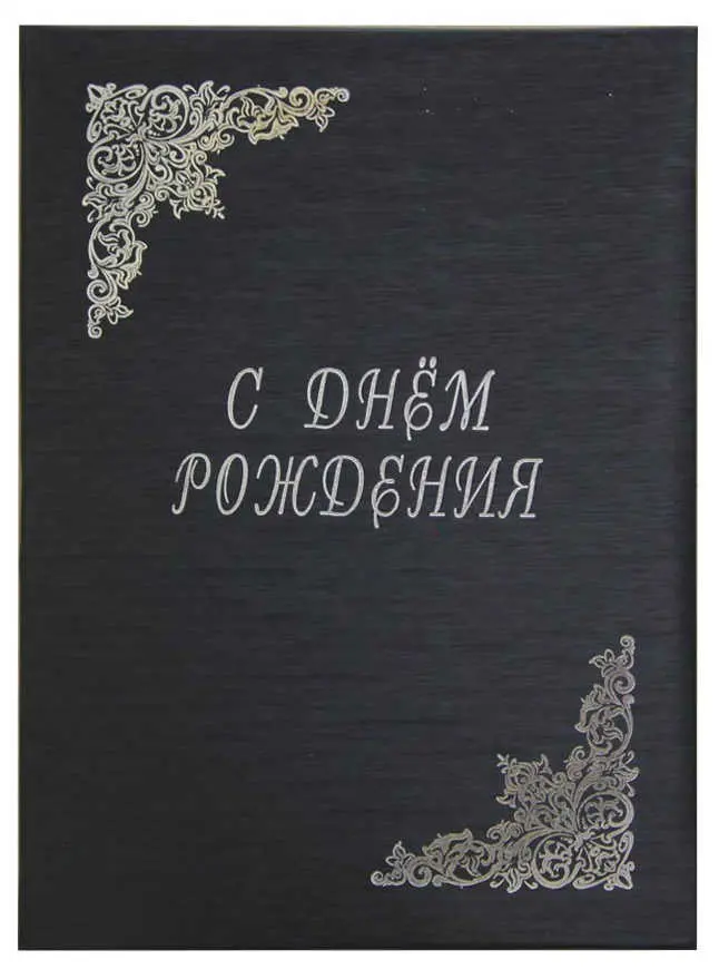 Папка адресная дизайнерские материалы А4 (пухлая) "С Днем Рождения" шелк черный