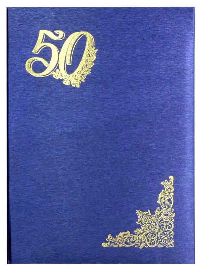 Папка адресная дизайнерские материалы А4 (пухлая) "50 лет" шелк синий