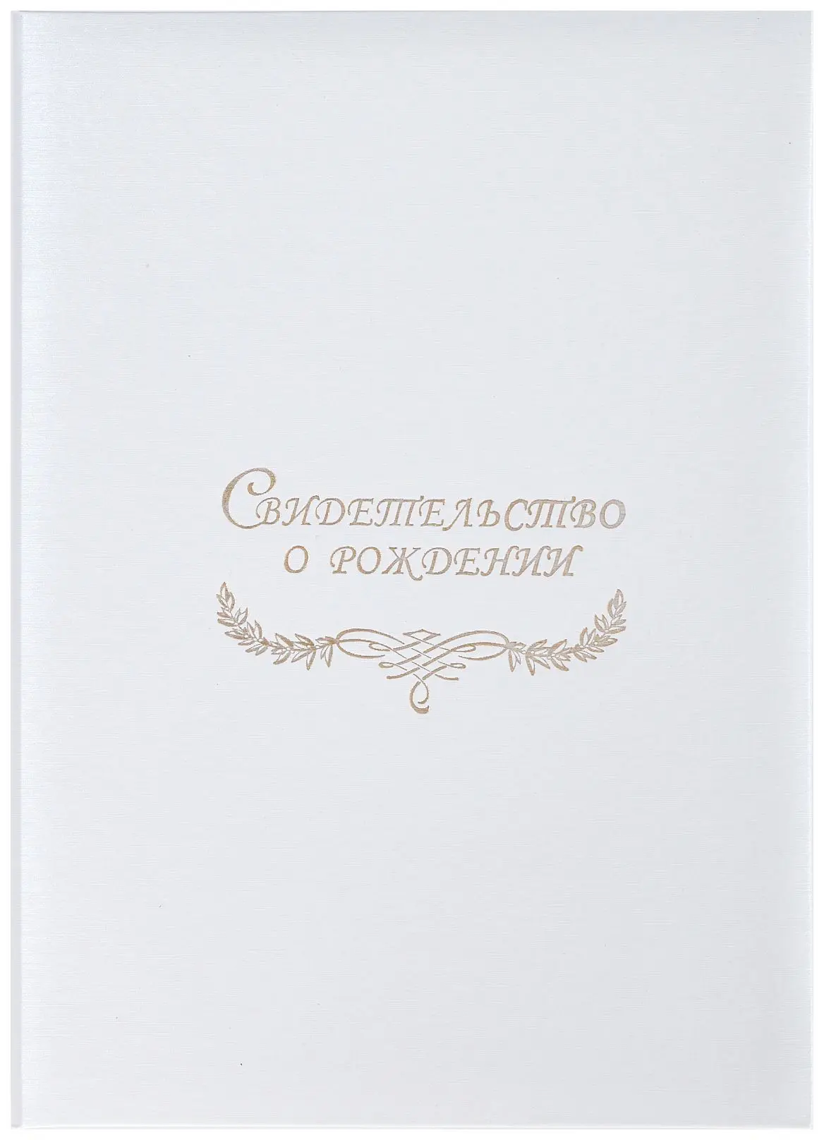Папка с файлом дизайнерские переп.материалы А4 (пухлая) "Свидетельство о рождении с виньеткой" шелк белый