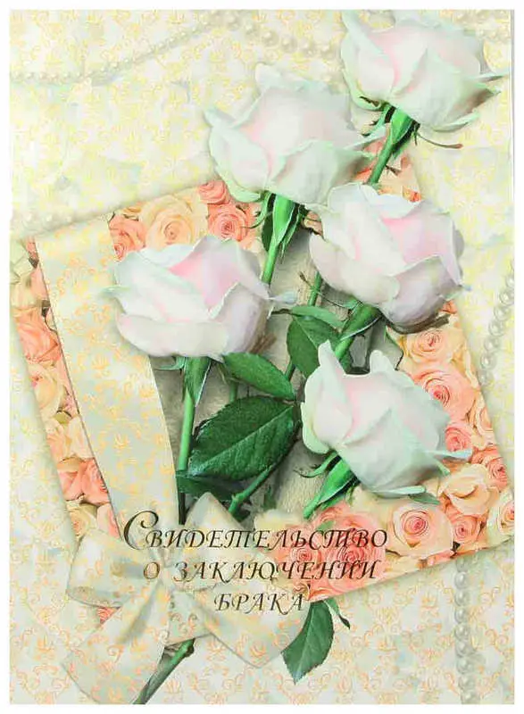 Папка с файлом дизайнерские переп.материалы А5 (пухлая) "Свидетельство о заключении брака с виньеткой" жемчуг