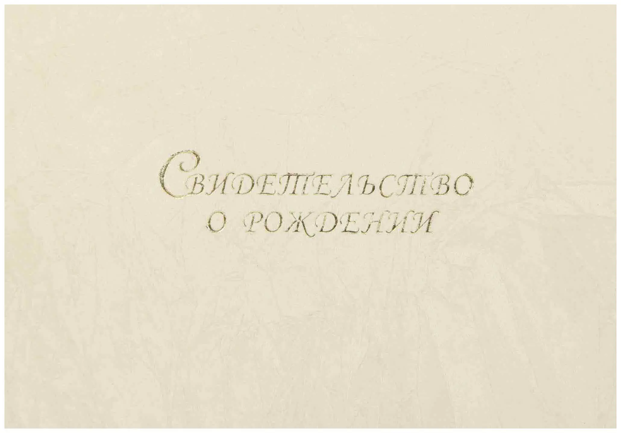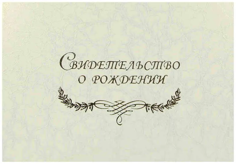 Папка с файлом дизайнерские переп.материалы А5 (жесткая) "Свидетельство о рождении с виньеткой" шелк слоновая кость