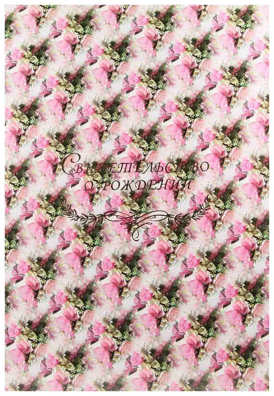 Папка с файлом дизайнерские переп.материалы А5 (пухлая) "Свидетельство о рождении с виньеткой" лепестки розовые