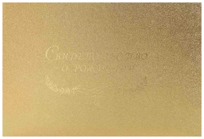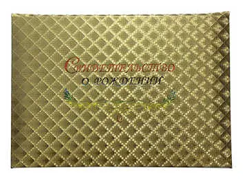 Папка с файлом дизайнерские переп.материалы А5 (пухлая) "Свидетельство о рождении с виньеткой" пыль золотая