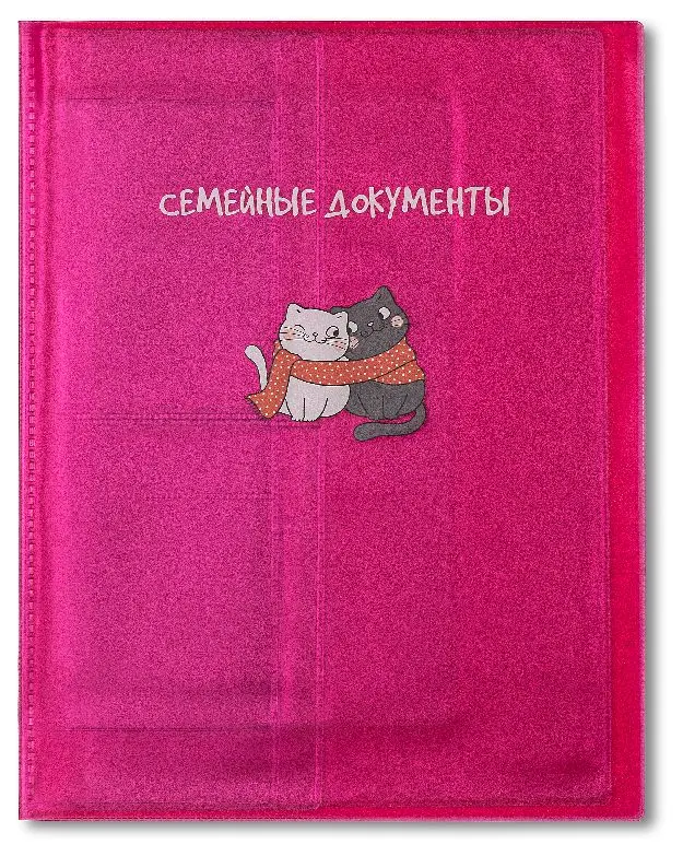 Папка "Семейные документы" ПВХ желе красное, печать (принт) "Котик" с приваренным блоком (19 кармашков)