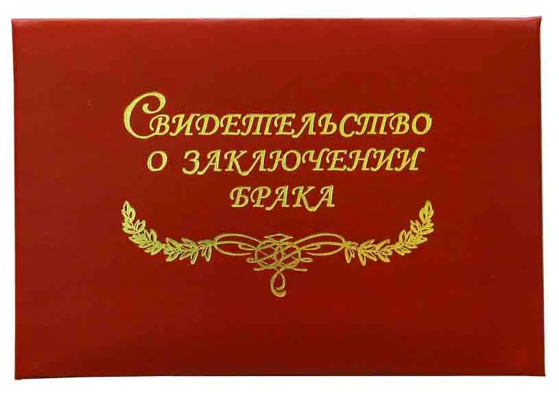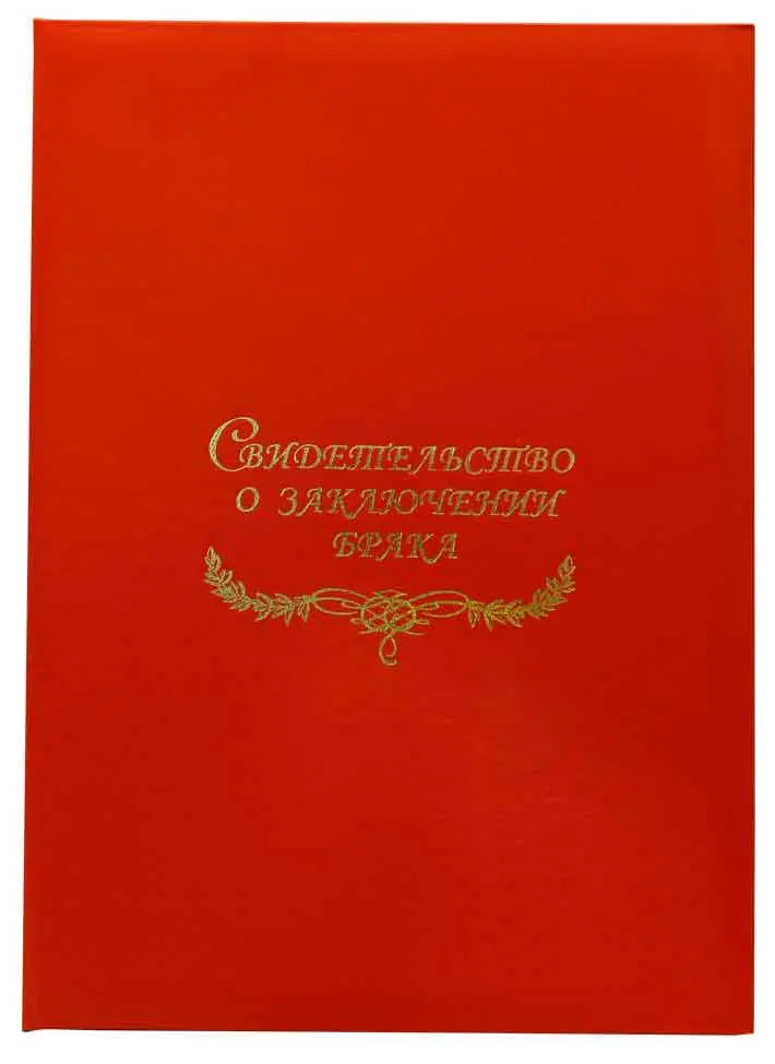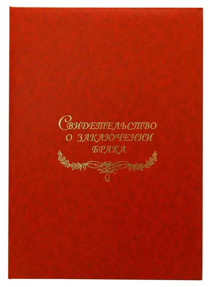 Папка с файлом бумвинил А4 (жесткая) "Свидетельство о заключении брака с виньеткой" красная с разводами