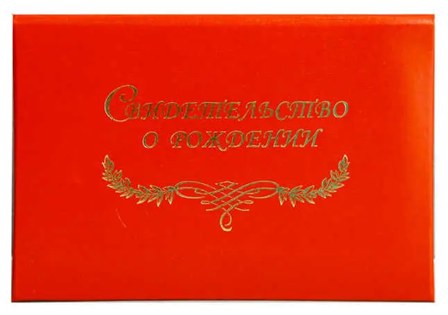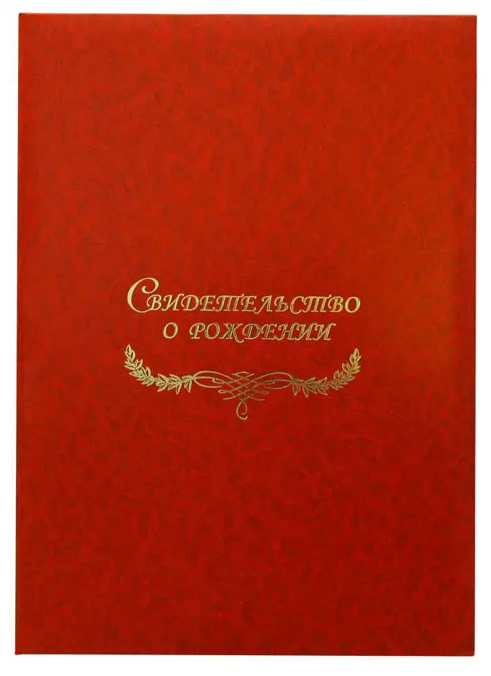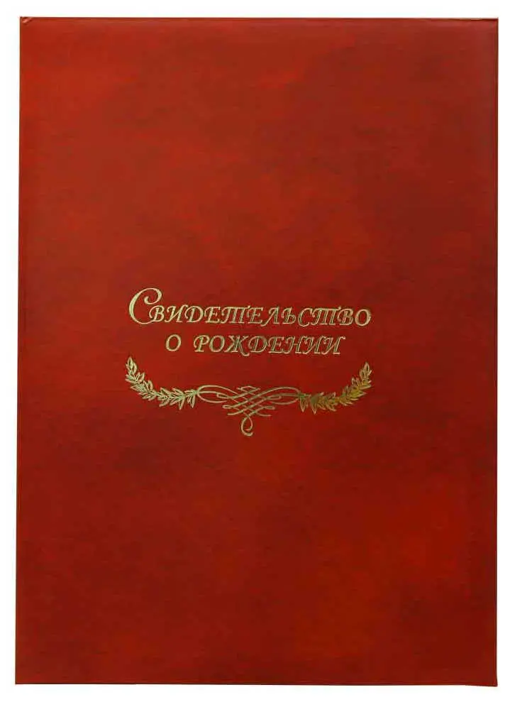Папка с файлом бумвинил А4 (пухлая) "Свидетельство о рождении с виньеткой" красная с разводами