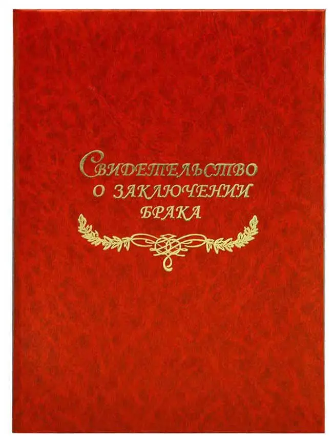 Папка с файлом бумвинил А4 (пухлая) "Свидетельство о заключении брака с виньеткой" красная с разводами