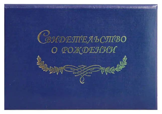 Папка с файлом бумвинил А4 (пухлая) "Свидетельство о рождении с виньеткой" синяя