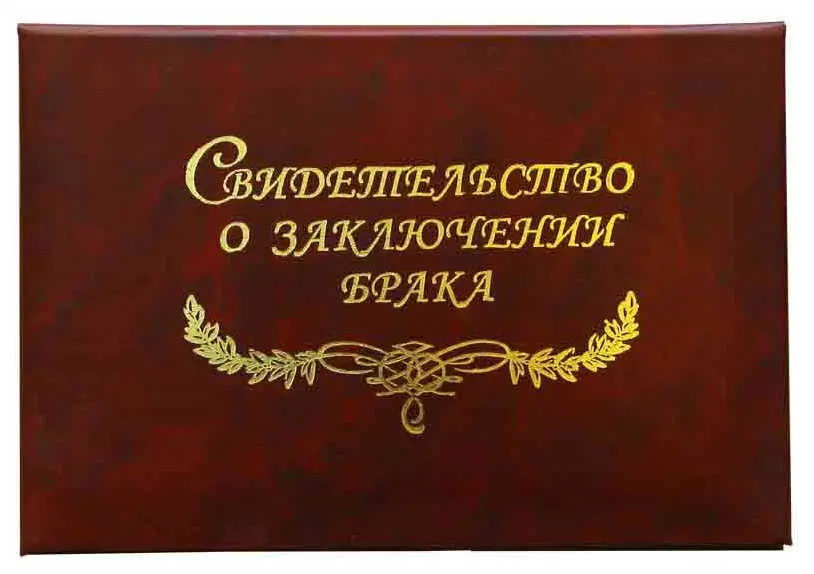 Папка с файлом бумвинил А5 (жесткая) "Свидетельство о заключении брака с виньеткой" бордовая