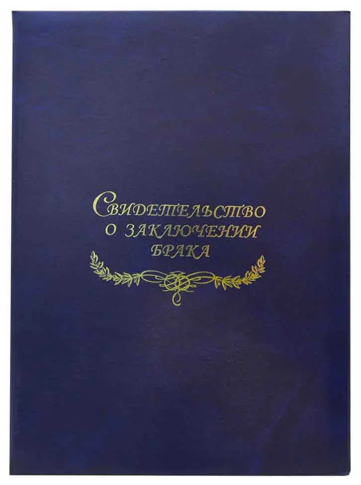 Папка с файлом бумвинил А4 (жесткая) "Свидетельство о заключении брака с виньеткой" синяя с разводами