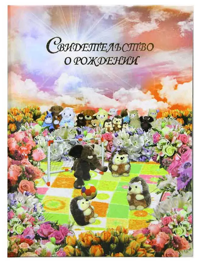 Папка с файлом ламинированная А4 (жесткая) "Свидетельство о рождении" Игрушки с сердечком