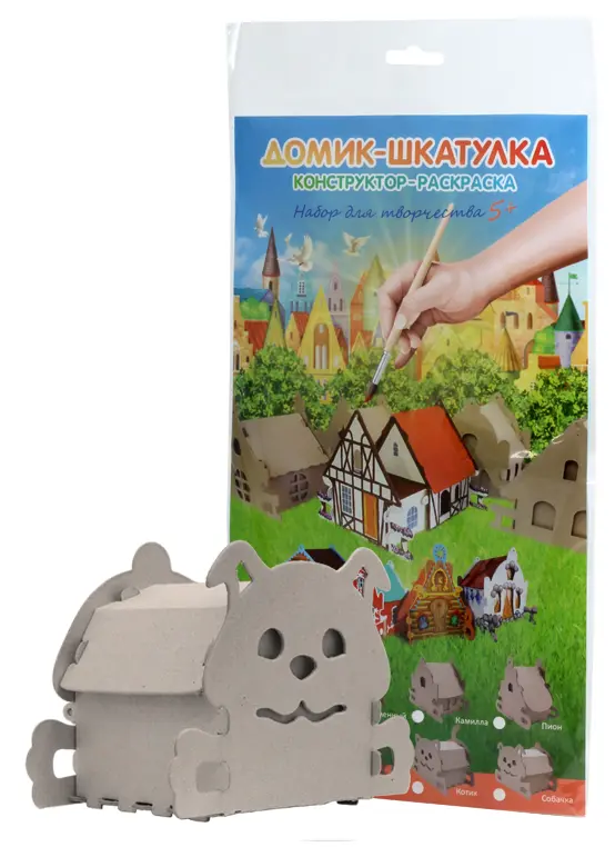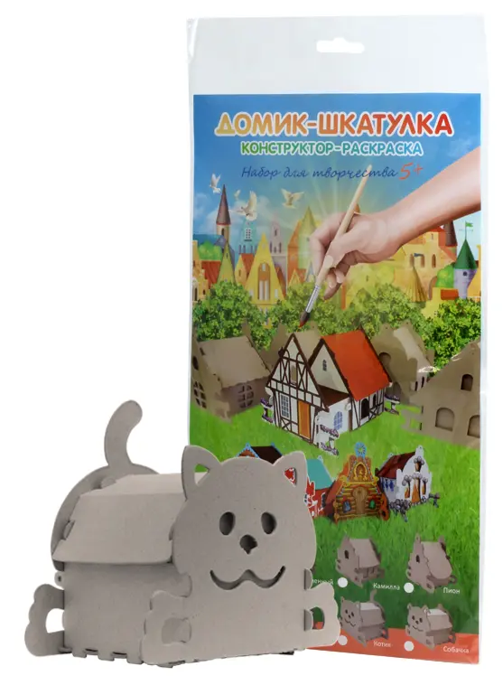 Конструктор-Раскраска-Домик-Шкатулка "Котик" в пакете с европодвесом