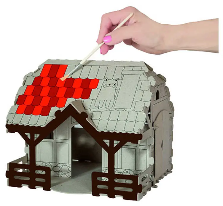 Набор для творчества Конструктор-Раскраска-Домик-Шкатулка "Камилла" в гофрокоробке с комплектом красок и кисточкой
