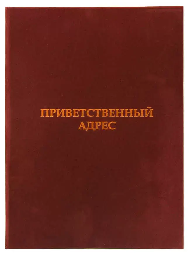 Папка адресная бархат бордо А4 (пухлая) "Приветственный адрес" с ляссе