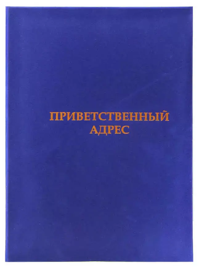Папка адресная бархат синий А4 (пухлая) "Приветственный адрес" с ляссе